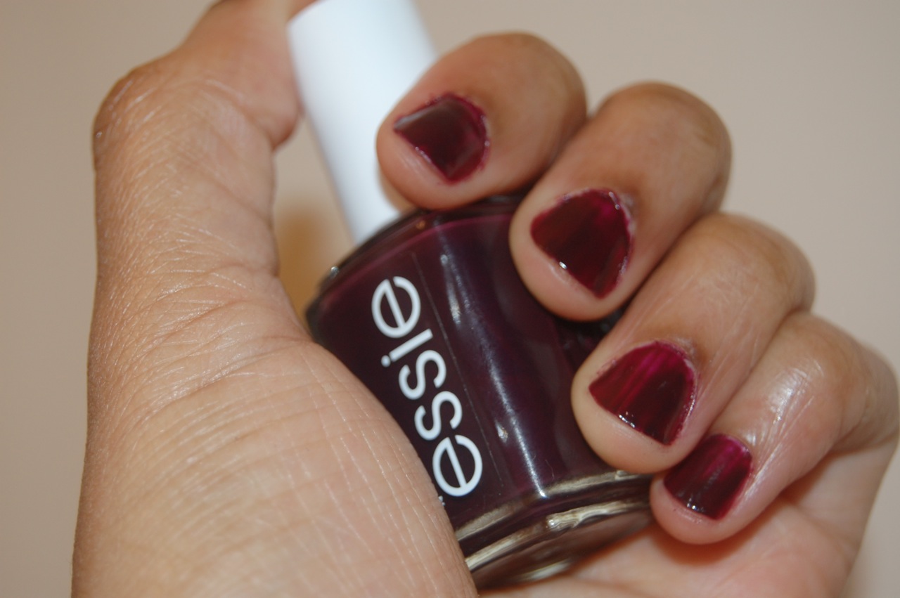 Oh! And here’s a tip: I think the key to using coloured polish (as opposed to the clear stuff) is layering. After one coat, my nails looked fuchsia. It took two for them to look closer to the purple-y plum in the bottle.