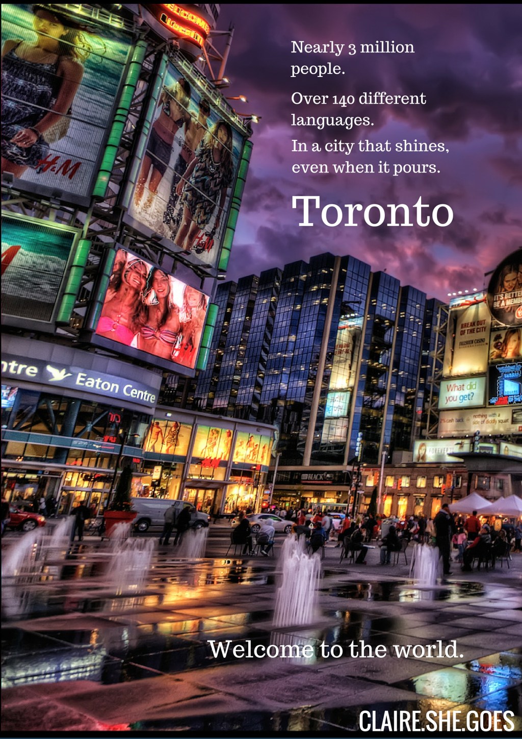 I live in the suburbs, and can’t help but be in love with Toronto. The hustle, the bustle–the diversity. Everything about the place makes me come to life.